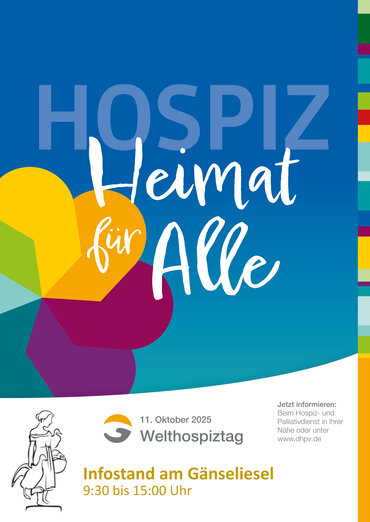 Anlässlich des diesjährigen Welthospiztages unter dem Motto “Heimat für Alle” am 11.10.2025 organisiert der Ehrenamtliche Dienst des Palliativzentrums Göttingen (Universitätsmedizin Göttingen) einen Infostand in der Innenstadt gegenüber des Gänseliesels.