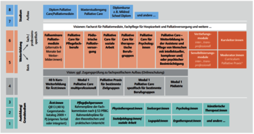 Quelle: Auszug aus: Vision Bildungswege in Palliative Care/Palliativmedizin der Arbeitsgruppe Bildung der Deutschen Gesellschaft für Palliativmedizin. Mit freundlicher Unterstützung des Thieme Verlags