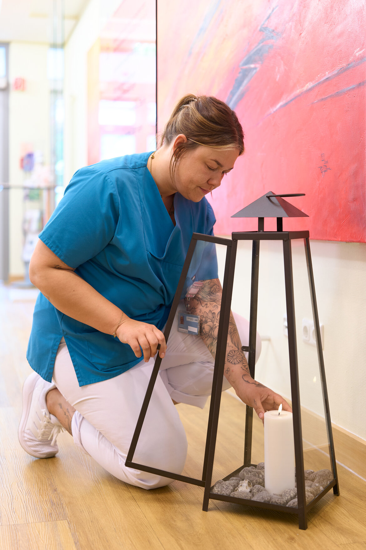 Ziel der Behandlung ist es, den Patienten bzw. die Patientin möglichst wieder in das häusliche Umfeld oder in eine andere stationäre Einrichtung wie z. B. Hospiz oder Pflegeheim zu entlassen. Aber die Palliativstation ist auch ein Ort für die Begleitung und Behandlung der Patientinnen und Patienten in der Sterbephase bis zum Tod bei entsprechender Notwendigkeit eines Krankenhausaufenthaltes. Unterstützen und Begleiten möchten wir auch die Angehörigen der Patient*innen. Zudem besteht die Möglichkeit für Angehörige während des stationären Aufenthaltes als Begleitperson mit im Patientenzimmer zu übernachten.